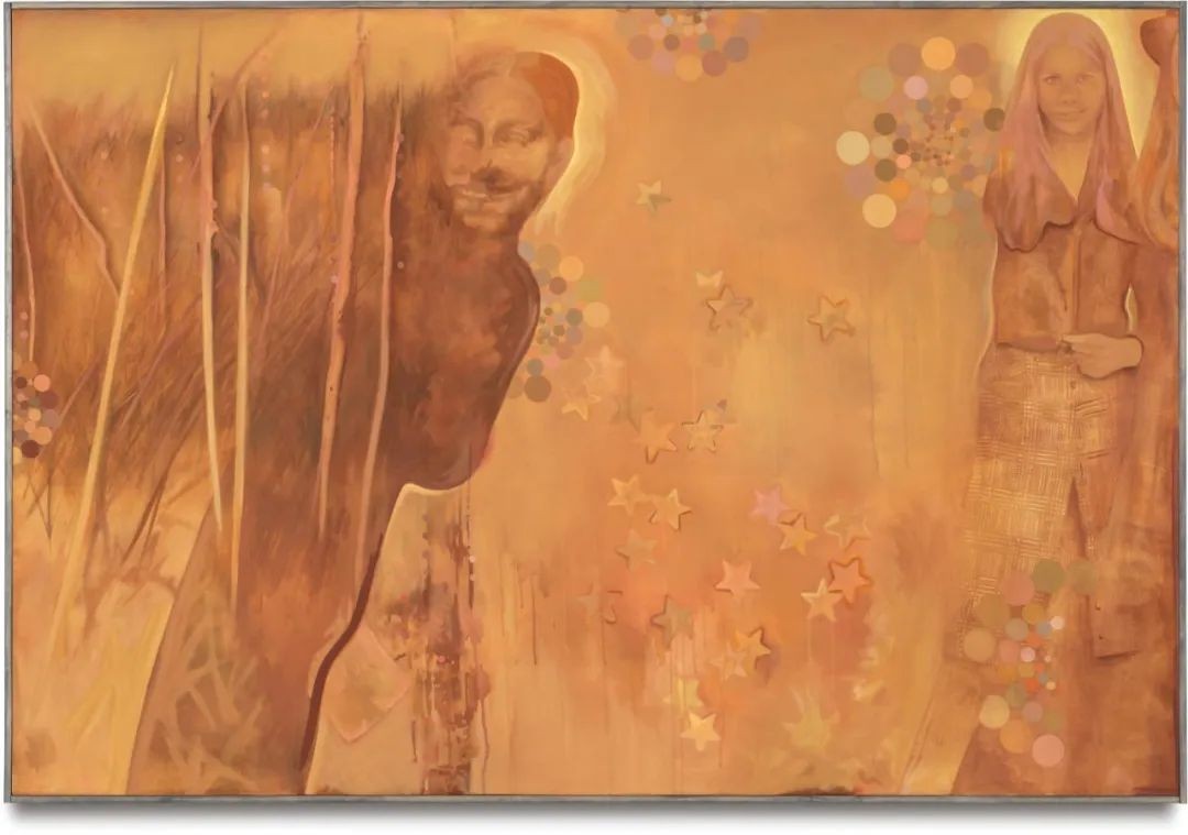 她深入思考历史上的反文化运动如何塑造美学,其画作中强烈的图案与色彩便代表了充满焦虑的家庭景观。通过运用与既有女性气质观念相关的、夸张又富于自我意识的图像,将一种戏剧性的“陷入疯狂”的过程神话化。这既可被看作是对文学套路的讽刺,也可被视为一种尝试,意在描绘歌剧式叙事中特有的张力。她对工艺的迷恋,与其重塑历史上被视为“男性化”的劳动密集型媒介(如彩绘玻璃、青铜铸造和手工木作)的性别属性的尝试紧密相连。