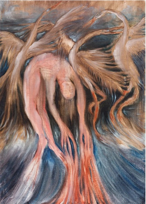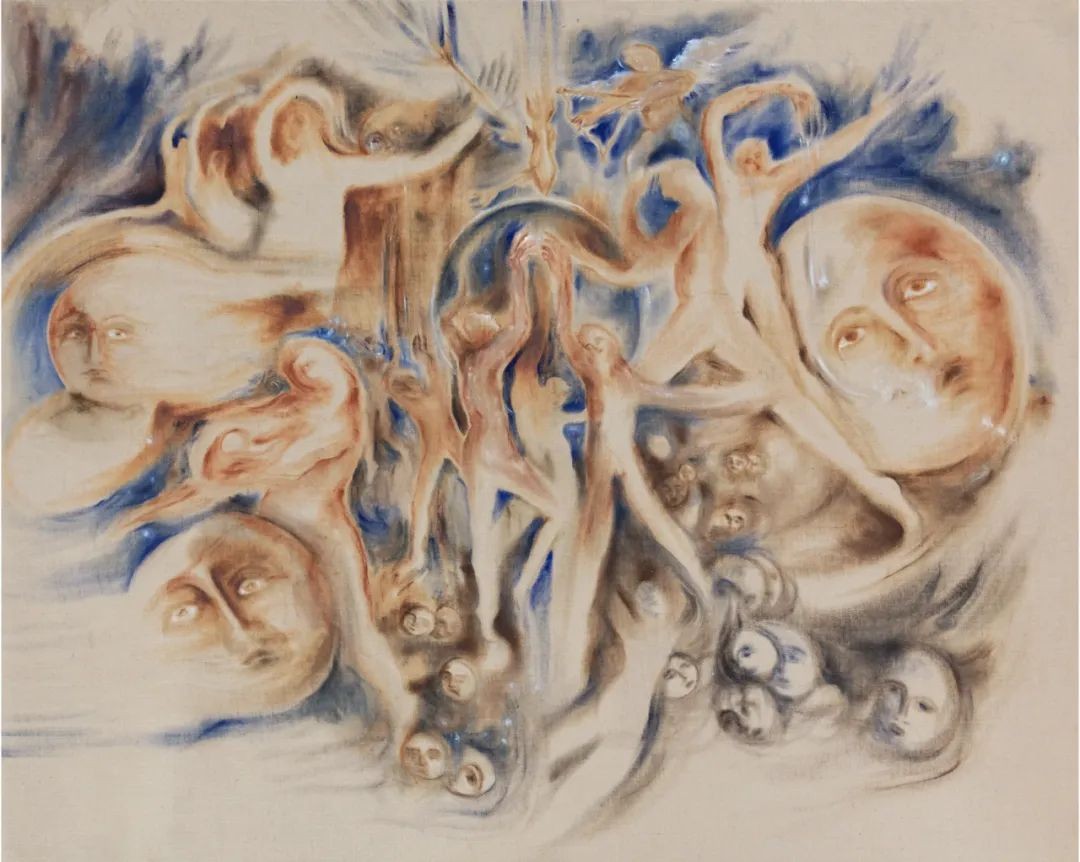 她的创作不仅限于绘画,也延伸至雕塑和装置,融合毛发、兽皮、古木等多种材料,构建出一个赋权女性的神圣宇宙。通过这种方式,萨斯米塔的艺术不仅是对个人身份的探索,也旨在为后父权社会的未来,构想一种世俗且充满力量的新神话。