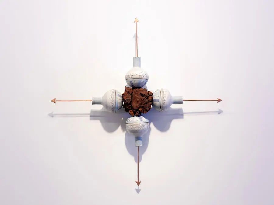 Ceramic, copper and iron ore, 105 × 105 × 25 cm. Courtesy: the artist and Mitre Galeria