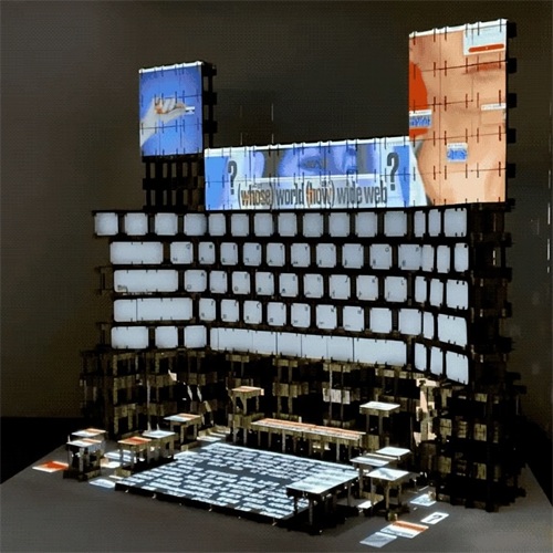 为了抵制这种趋势,她创造了众多非传统、甚至“不友好”的网页交互界面。在创作中,她常常利用摩擦、延迟或混乱感作为策略,意图揭示那些在“流畅”设计中被刻意隐藏的问题。她的作品不仅限于线上,也延伸到线下,通过实体装置和雕塑将数字系统及其局限性可视化,从而建立线上与线下空间的联系。
