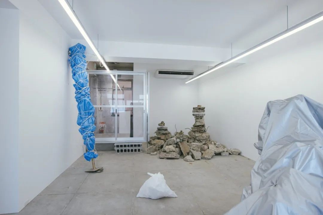 近年来,横手太纪开始将影像艺术融入创作,不断拓展其表现手法的边界。2025年首尔Frieze艺术博览会上,他展出了一件名为Floating Rubble / Zen, Gure, Coco, Sen, Po, Ten, Kuki, Kurumi的装置作品,该作品将他学生时代工作室的钢筋混凝土墙面和地板碎片悬浮在空中。这件作品延续了他一贯的创作思路,即通过雕塑、装置、录像和摄影等多种媒介,探讨被丢弃或过时材料中所蕴含的叙事,并赋予它们全新的意义。