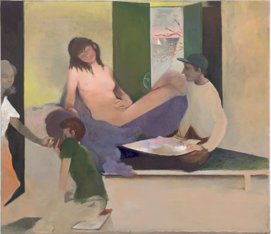 凯特·迈斯纳的绘画描绘了社会身份与物质属性皆高度模糊的感性人体。在被压缩且光线鲜明的空间里,这些躯体摆出各种姿态、肆意扭曲,仿佛沉浸在狂喜或痛苦的状态中,为取悦观者而进行着私密的表演。