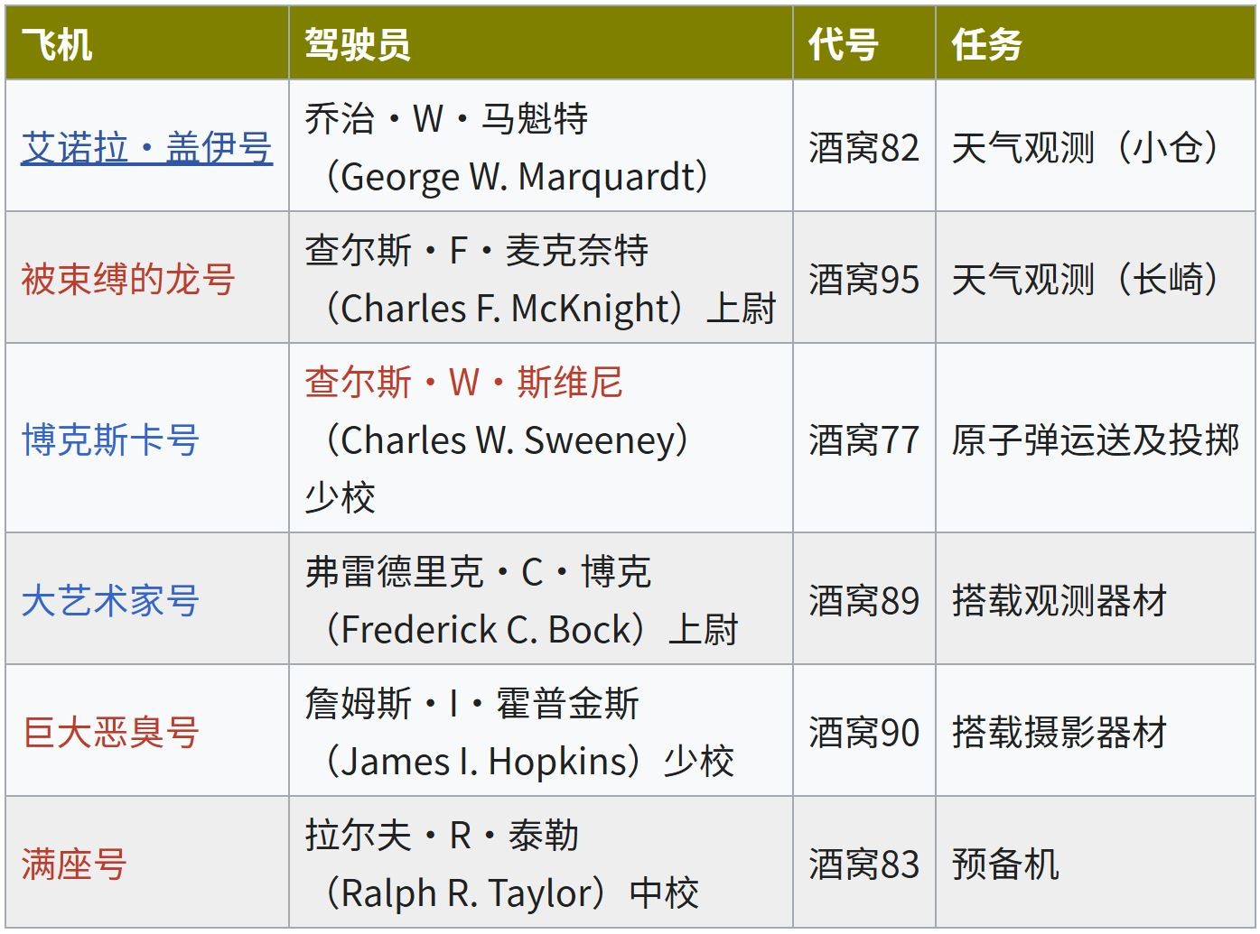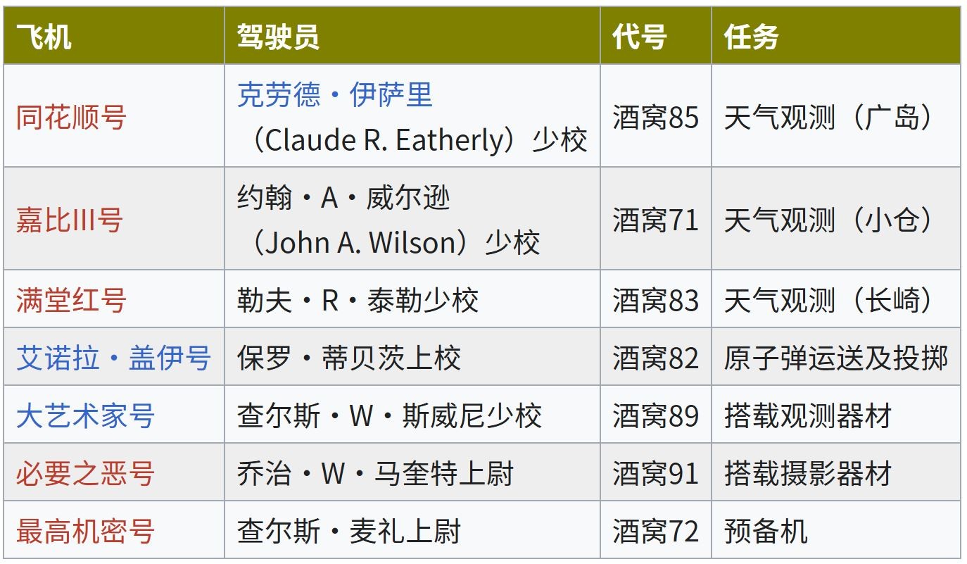 就是说包括艾诺拉·盖伊号在内,一共有6架飞机参加了这次作战,从天宁岛飞往目标广岛市,大约需要7个小时。