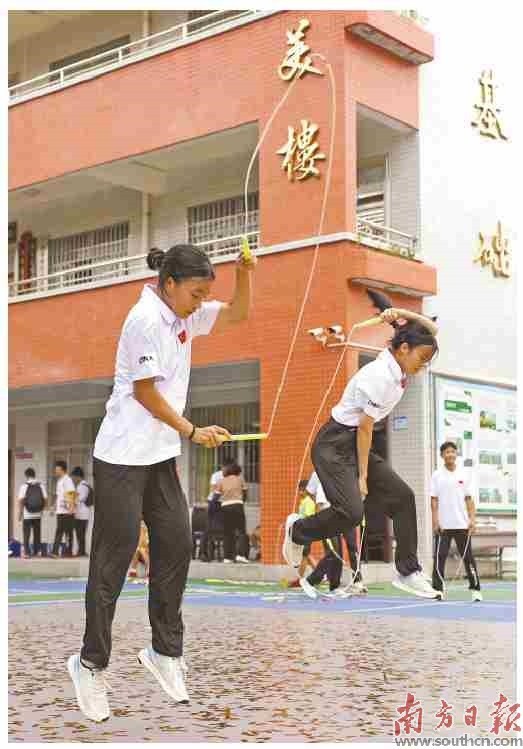 广州某学校的学生利用课间时间练习花式跳绳。吴伟洪 摄
