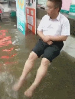 1、六十组搞笑动图:完了,上个厕所,马桶坏了,咋解释?