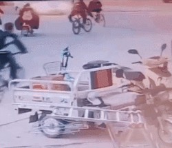 90、小同学,你要是不非嘚瑟这一下,老老实实的骑车,说不定就安全到家了……