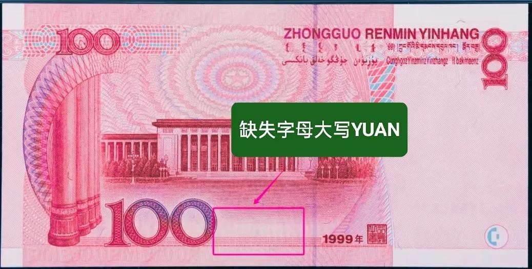 1999年版的100元纸币在设计上存在一些显著的特征,这些特征使其在后续版本中得到了修正。首先,纸币正面右侧的横冠号与左侧完全相同,这种重复设计在后续版本中得到了优化。其次,背面缺少了汉语拼音“YUAN”字样,这一细节在2005年版中得到了补充。这些设计上的“瑕疵”使得1999年版100元纸币在收藏界被称为“错版钞”,从而增加了其稀缺性和收藏价值。