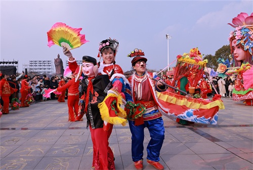 商丘火神台华商文化广场,正在进行非遗肘歌表演。
