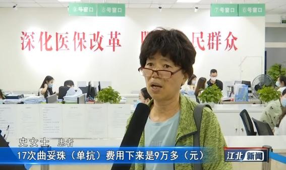 江北区观音桥街道猫儿石社区居民史美玉:“那时候就用靶向药,曲妥珠(单抗),整个疗程下来是17次,17次曲妥珠(单抗)费用下来是9万多,自从享受医保政策过后,我可能17次只花得到9000多。在没有享受医保政策时,(患癌)给我们家庭确实造成了很大的负担,享受这个医疗政策,我们轻松多了。”