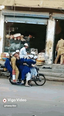 要不说印度是一个神奇的国度,一辆小单车上载8个孩子,硬生生把摩托当成公交车了,考虑过摩托的感受吗。