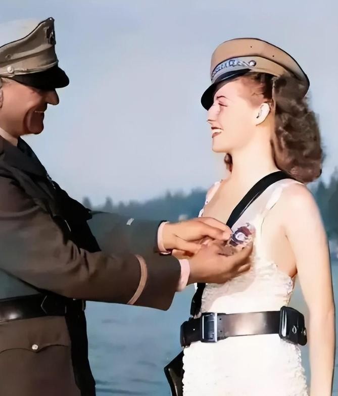 上世纪30年代,美国一位女的警授勋仪式。这位女警身穿宽大的军帽,腰间佩戴着威风凛凛的警用皮带和枪支。她散发出清秀动人的面容和高挑迷人的身姿,无法抗拒地吸引着人们的目光。
