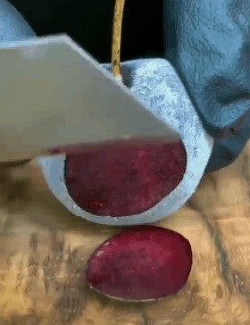 这是巴西的针叶樱桃,为了能够在炎热的夏天食用,直接冷冻后切片,每一片都切除了5A级和牛的感觉。