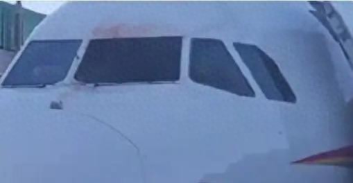 西藏航空TV9873落地后驾驶舱窗口外侧有血迹 图源:央视新闻