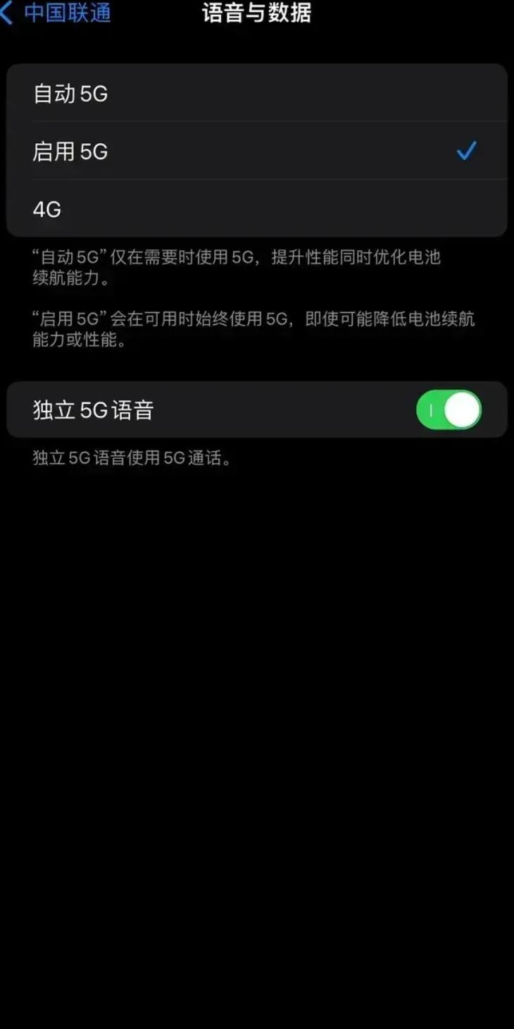 在“设置”中的“蜂窝网络”里,我们可以找到“语音与数据”选项。