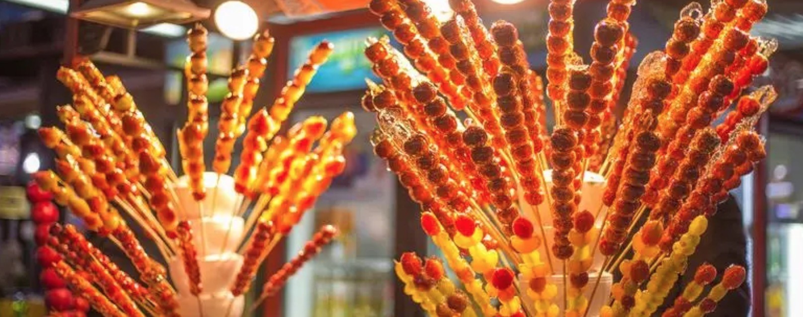 冰糖葫芦摊位:在天津的街头小巷中,你会找到许多传统的冰糖葫芦摊位。