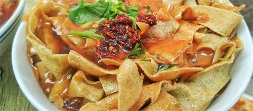 面茶的味道多样,辣椒酱和酱油的混合带来了浓郁的口味,是一道清凉爽口的小吃。