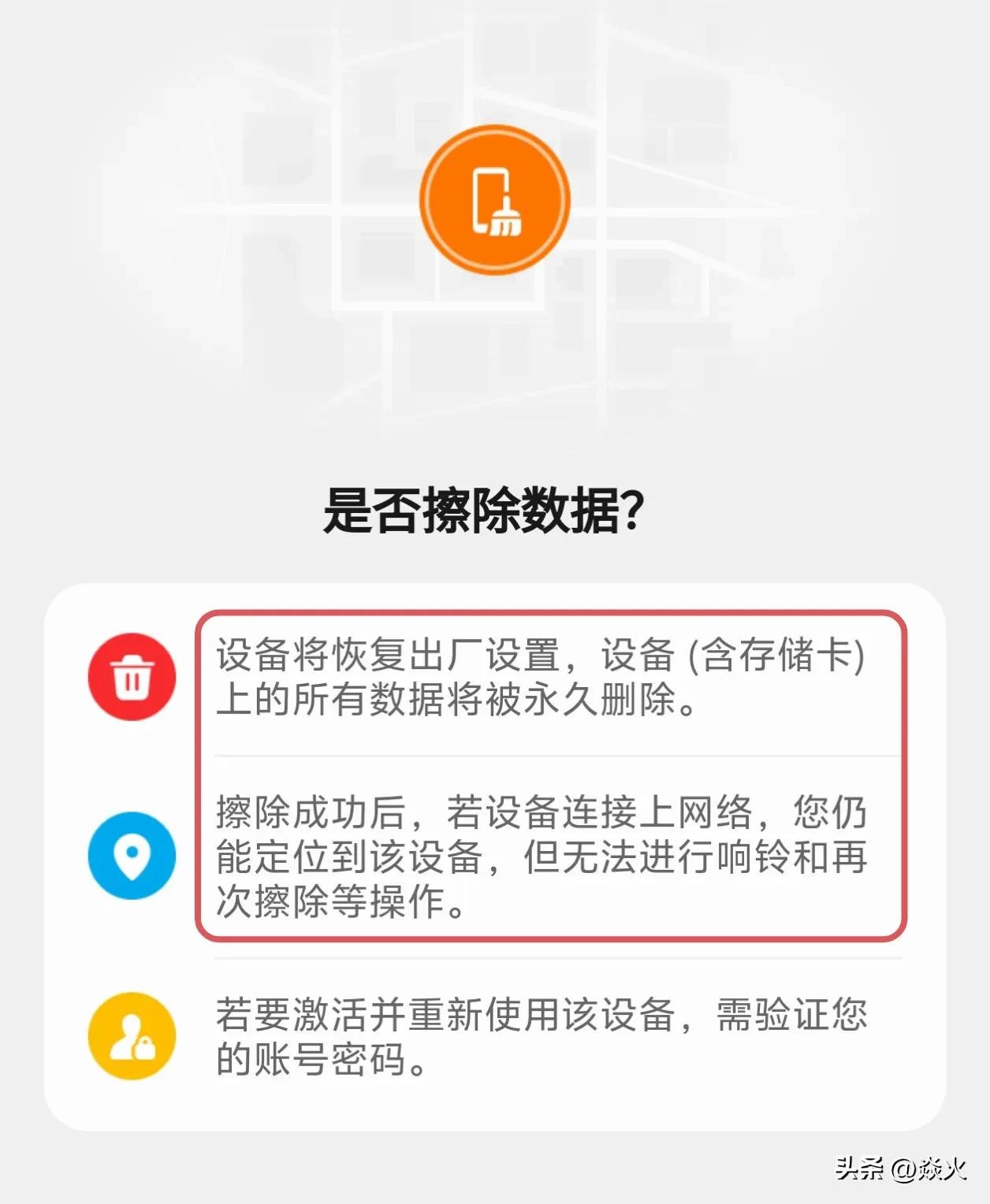 如果选择这一项,就可以把我们丢失手机里面的所有数据,全部都清除掉了,在清除以后,如果说这个手机又联网了,那你依然可以定位到它,不过呢,就没办法进行响铃或者再次清除这样的操作了。