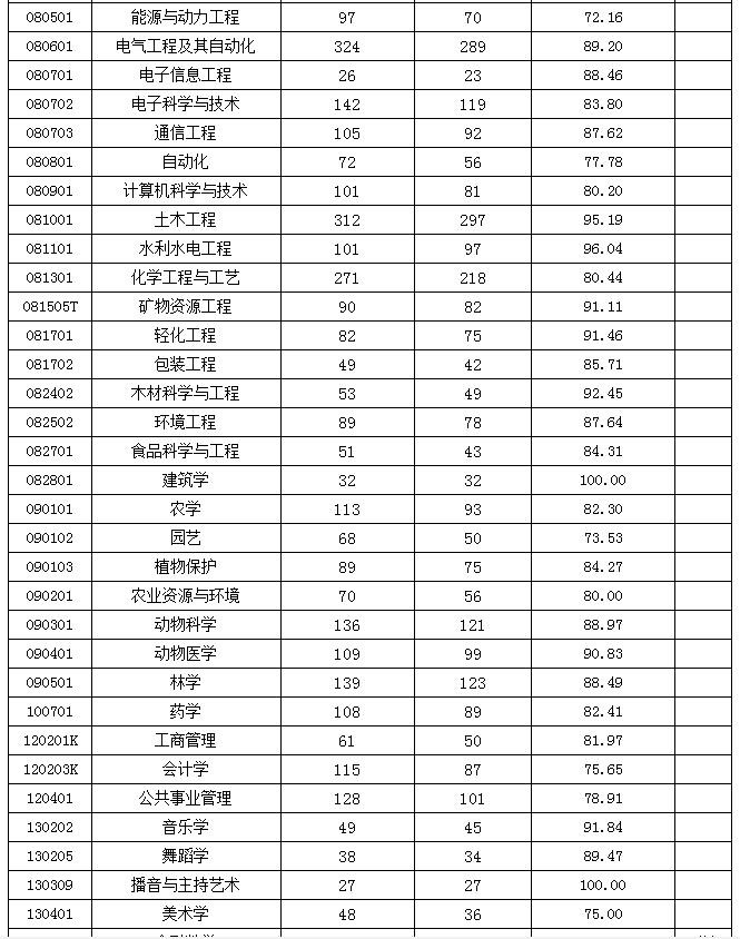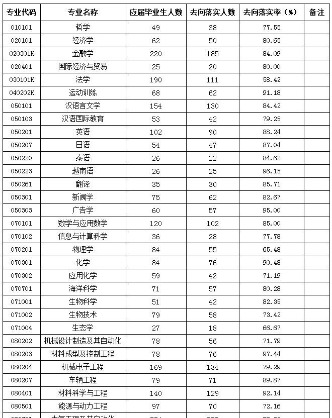 应届本科生分专业落实情况