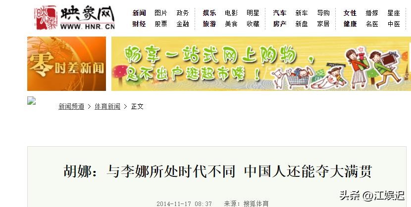 映象网 2014-11-17 胡娜:与李娜所处时代不同 中国人还能夺大满贯