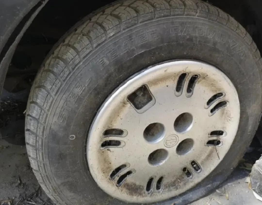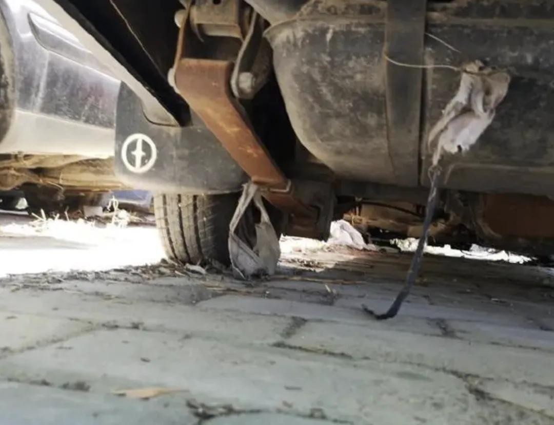 看看这辆报废老车的底盘,在卡车上很常见的钢板弹簧还能在这辆轿车身上看到。