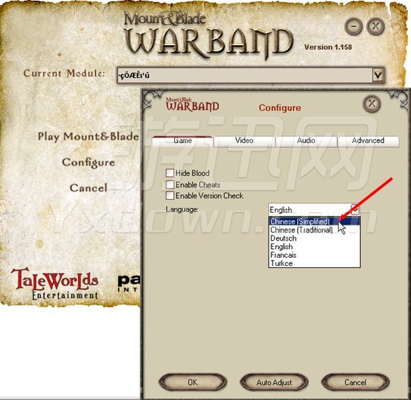 如果您打开游戏启动器之后,界面展示问英文,那么可以点击configure选项,打开game选项卡之后,language后面选择出Chinese(Simplified)确定,字幕即可转为中文