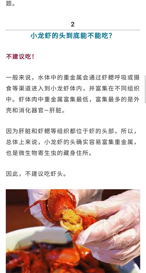 小龙虾的头不建议吃