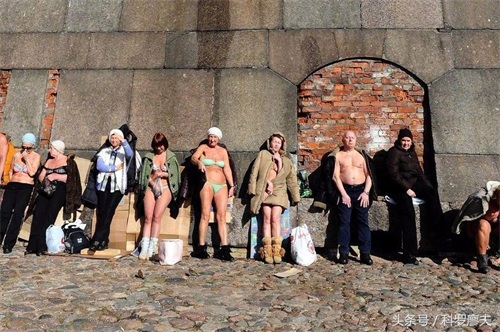 能成为战斗民族,首先要抗冻。这是俄罗斯圣彼得堡的市中心,一帮日光浴爱好者在晒太阳,你知道此时室外温度有多少热乎么,才三度,负的!