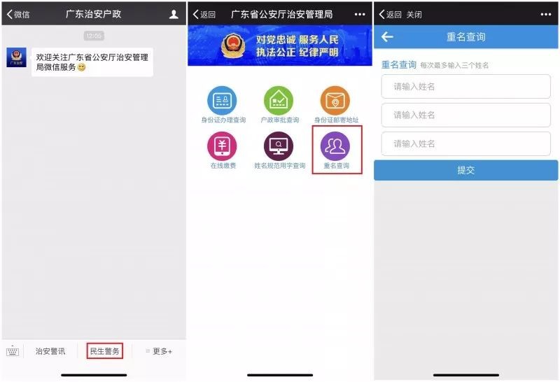 近日正式上线开通服务的“广东治安户政”微信服务公众号,是广东省公安厅治安管理局积极推进智慧新民生工作,打造警务服务的新平台,主要有“治安警讯”“民生警务”“更多+”三大板块。