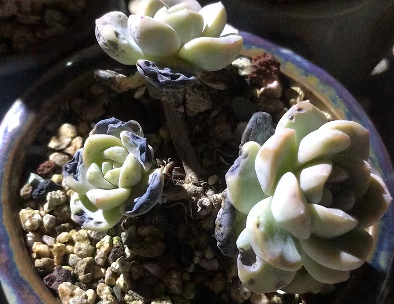 有些多肉明明非常耐晒,别人家都是越晒越出彩,而自家的多肉,特别娇气,很容易被晒伤、晒糊,很可能是你过度控水导致的。