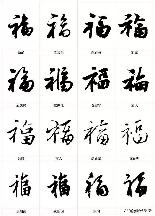 书法福字大全,百字百福图。其中包含有王羲之、邓石如、吴昌硕、桂馥、唐玄宗、柳公权的书法“福”字,何绍基、欧阳询、赵佶、褚遂良、颜真卿、赵孟頫的书法“福”字,孙文、毛泽东、周恩来、朱德、刘少奇、邓小平的书法“福”字,蔡京、董其昌、黄庭坚、宋克、文徵明、王宠、智永、怀素的书法“福”字等。