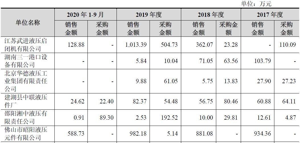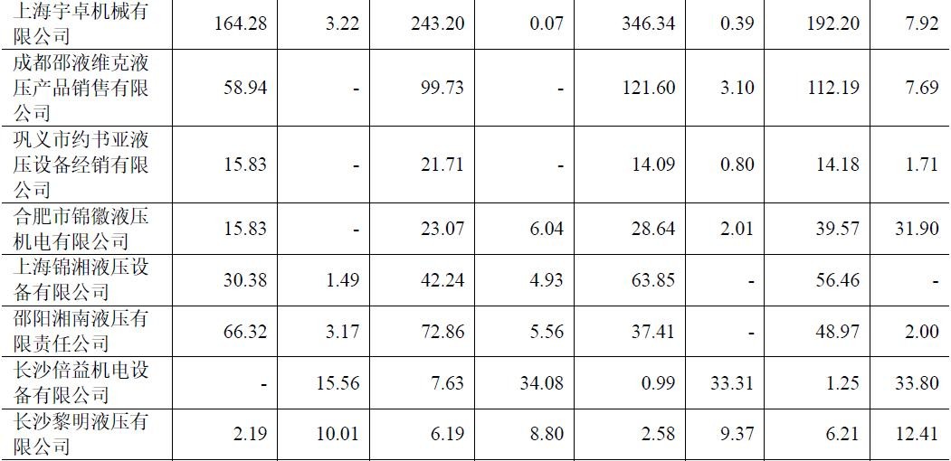 报告期内,维克液压存在多家客户与供应商重叠的情形(见表四)。公司向上述部分企业销售成品液压系统,同时向这些企业采购液压阀、液压缸、埋件等液压系统零部件。
