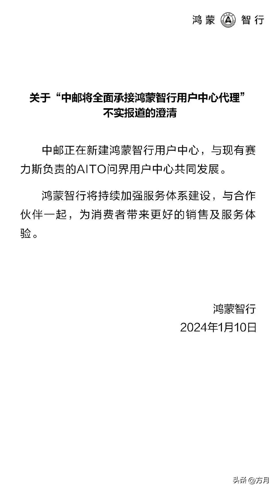 今天关于中邮(华为手机重要运营渠道商)全面接手华为鸿蒙智行用户中心业务的消息传的沸沸扬扬,其中有不实之处。中邮在11月下旬(鸿蒙智行品牌发布后)就已经与华为鸿蒙智行达成开展战略合作,现在应该已经洽谈完成准备进入实施阶段了,而且据介绍有些城市的新的用户中心已经开始启动,都是超3000平的大店。但这并不是说中邮要全面接收问界原来的用户中心,鸿蒙智行也发布澄清公告(不是辟谣),中邮应该会与原有用户中心共存,而且鸿蒙智行有可能继续引入具有雄厚资质的全国性渠道商一起加入,合作共赢。