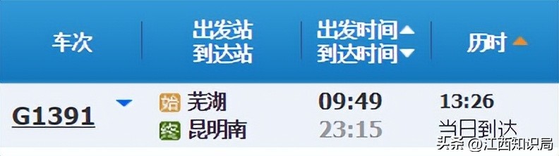 目前,芜湖至昆明每天仅此1班次高速列车——G1391次列车。