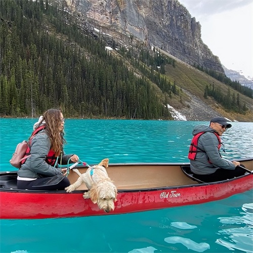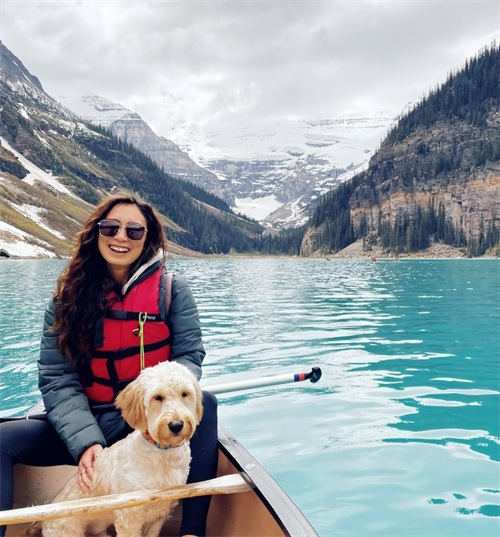之后,爱犬趁苗彤不注意,企图跳进水里。为了防止爱犬掉进湖里,她只能紧紧地抓住爱犬的绳子,都没时间好好欣赏风景了。