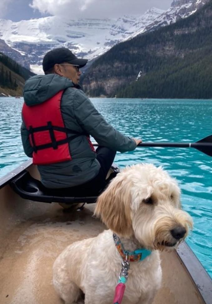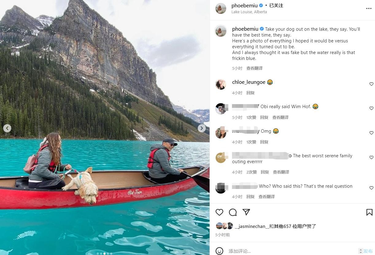 苗彤留言道,别人跟我说,把狗带到湖边去,将会玩得很开心,我只能说,这一切都是假的!