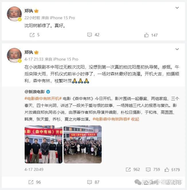 著名作家、该片导演郑执转发相关微博写道:“在小说跟剧本中写过无数次沈阳,没想到第一次真的拍沈阳是初执导筒……开机大吉,拍摄顺利,森中有林,枝繁叶茂。”