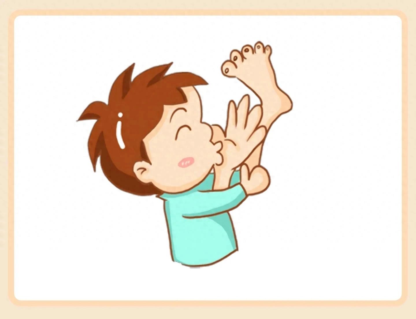 这个小男孩是怎么了?他竟然举起自己的手脚在亲吻。