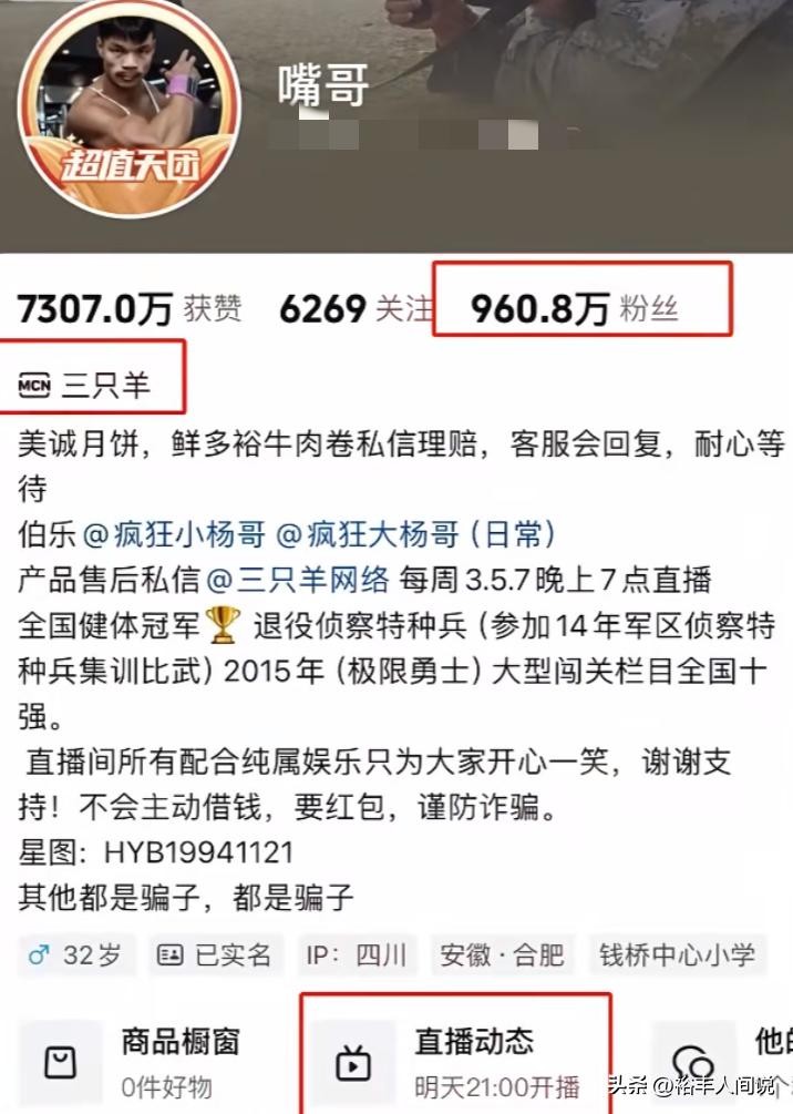 据媒体消息称,嘴哥将会在明天中午12点进行直播,但相关的直播预告在下午的时候已经被隐藏,而他目前账号的简介仍然保留着“三只羊”的MCN,其他徒弟,例如卓仕琳、七老板、乔妹等等依然存在这样的标签。