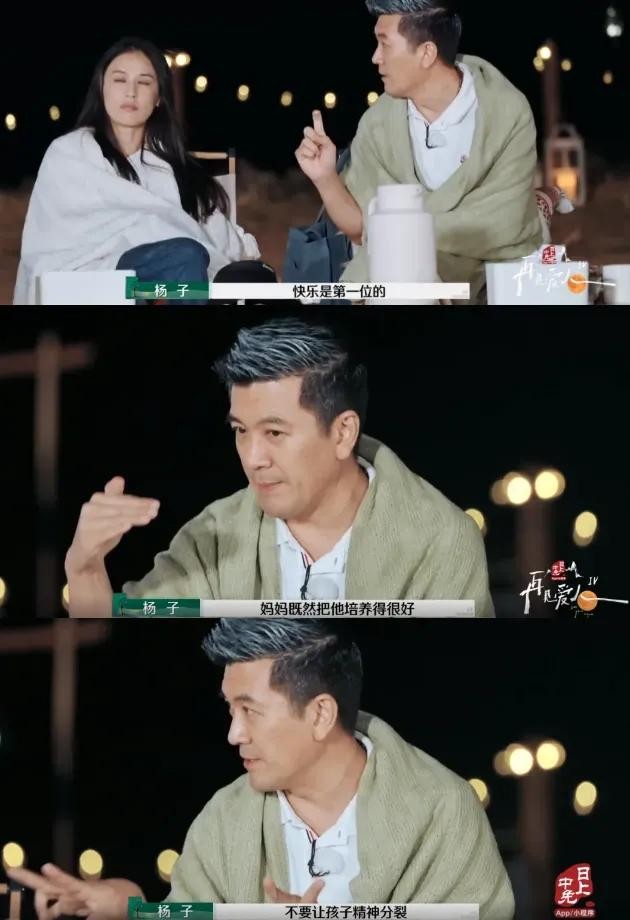 最后三组嘉宾聚在一起,黄圣依说杨子常年不管孩子。