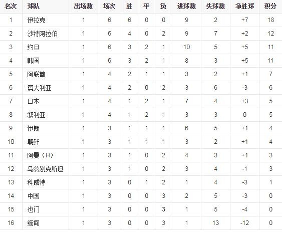 C组则有伊拉克队、约旦队、