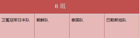 B组包括卫冕冠军日本队、