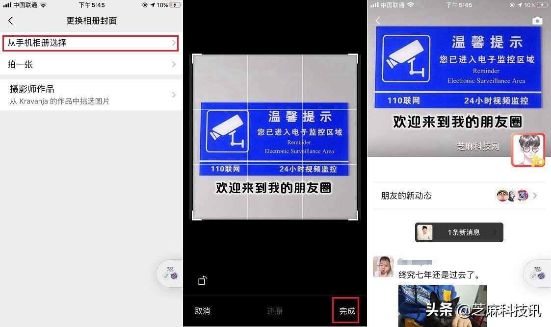以下图片,由于上传会自动加了水印,原图可以在关注 “芝麻科技讯” 头条号后,私信作者回复关键词 微信封面 自动获取原图。