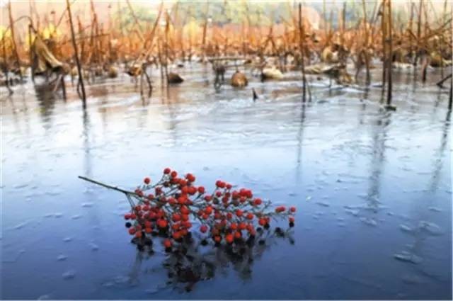 湖面上也结了冰,
