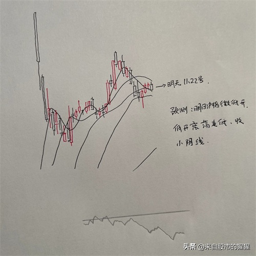 所以综合以上分析,我认为接下来市场调整的概率大。那么明天A股到底怎么走呢?大家请看关于明天走势的手绘预测图。