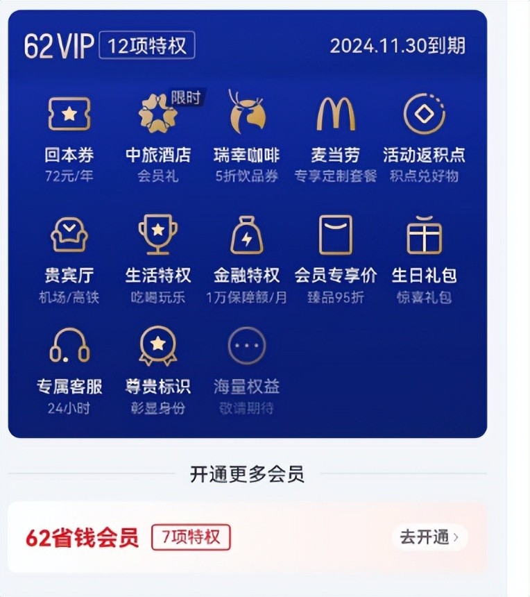 开通vip,一般要62元一年,前几天活动价是52元一年