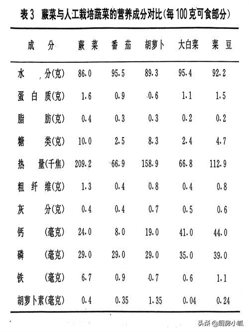 (二)蕨菜的营养成分