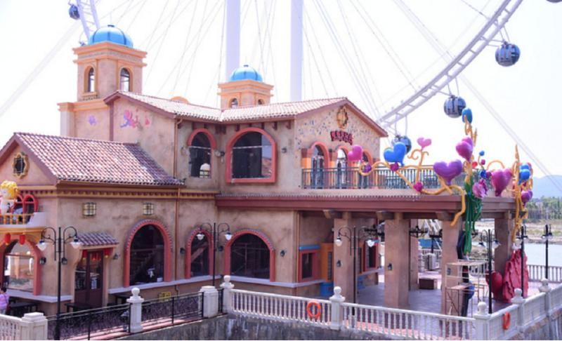 就在顺德之眼摩天轮下,有一幢两层的卡通小房子,看二楼,那里写着几个字:结婚登记处,货真价实的结婚登记处,竟然在漂亮的乐园里边,可真浪漫呀!