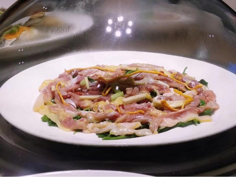 鲜香嫩滑的桑拿鸡确实不错~送进唇齿间的鸡肉清鲜不腻,饱吸鸡汁的桑叶鲜润爽口,细嫩的肉质触动着味蕾的每一根神经!