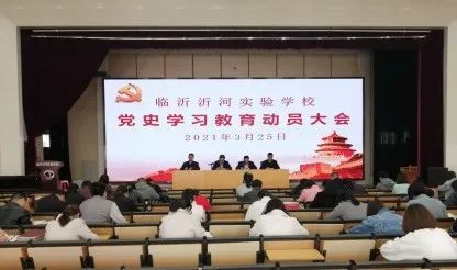 ● 3月25日,临沂沂河实验学校召开党史学习教育动员大会,全体党员和教干参加会议,会议传达了学校党史学习教育实施方案,号召全体党员在思想上能与时俱进,深刻铭记中国共产党百年奋斗的光辉历程。