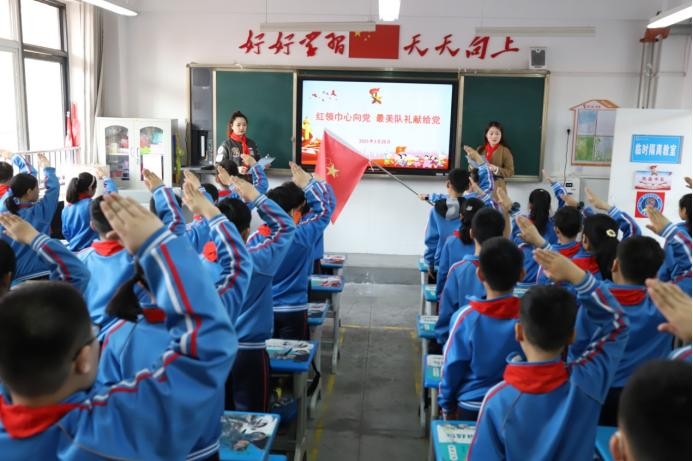 ● 3月25日,临沂三河口小学开展“红领巾心向党,最美队礼献给党”主题教育活动。少先队员们通过学习敬队礼,举行最美队礼比赛等活动,用标准、规范的队礼向建党100周年献礼。